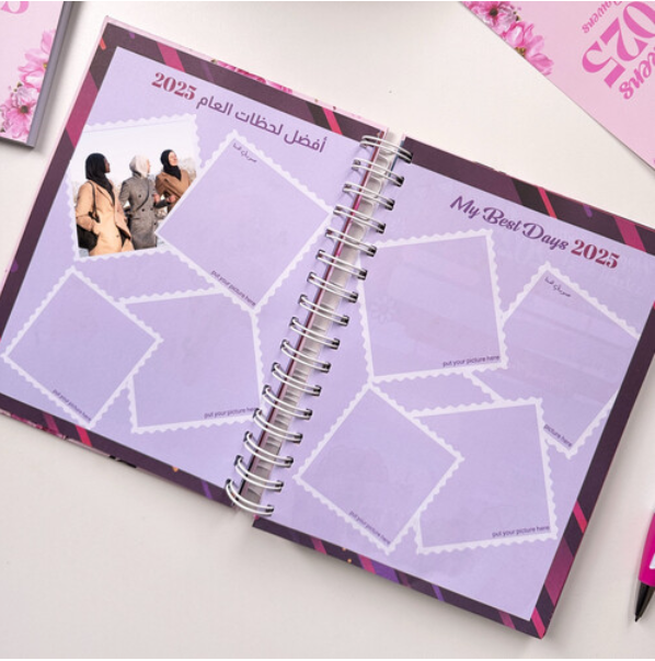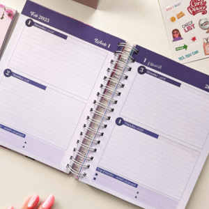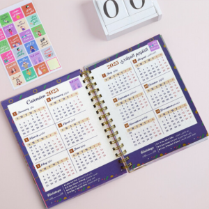 ارتق بتجربتك في التخطيط مع أجندتنا الفاخرة بحجم A5. مصممة للاستخدام السهل، تتميز بغطاء صلب مبطن بالإسفنج لراحة اليد. يحتوي الداخل على تقسيمات مميزة، مما يجعل من السهل تنظيم أفكارك وجداولك بأسلوب أنيق.