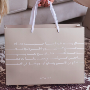 أكمل هديتك مع حقيبة الهدايا الخاصة المطبوعة بعبارة مخصصة، مصممة بشكل أنيق لتحتوي المجموعة بأكملها. إنها مثالية لتقديم هذه المجموعة الرائعة لشخص مميز أو لتخزين مستلزماتك بأناقة.